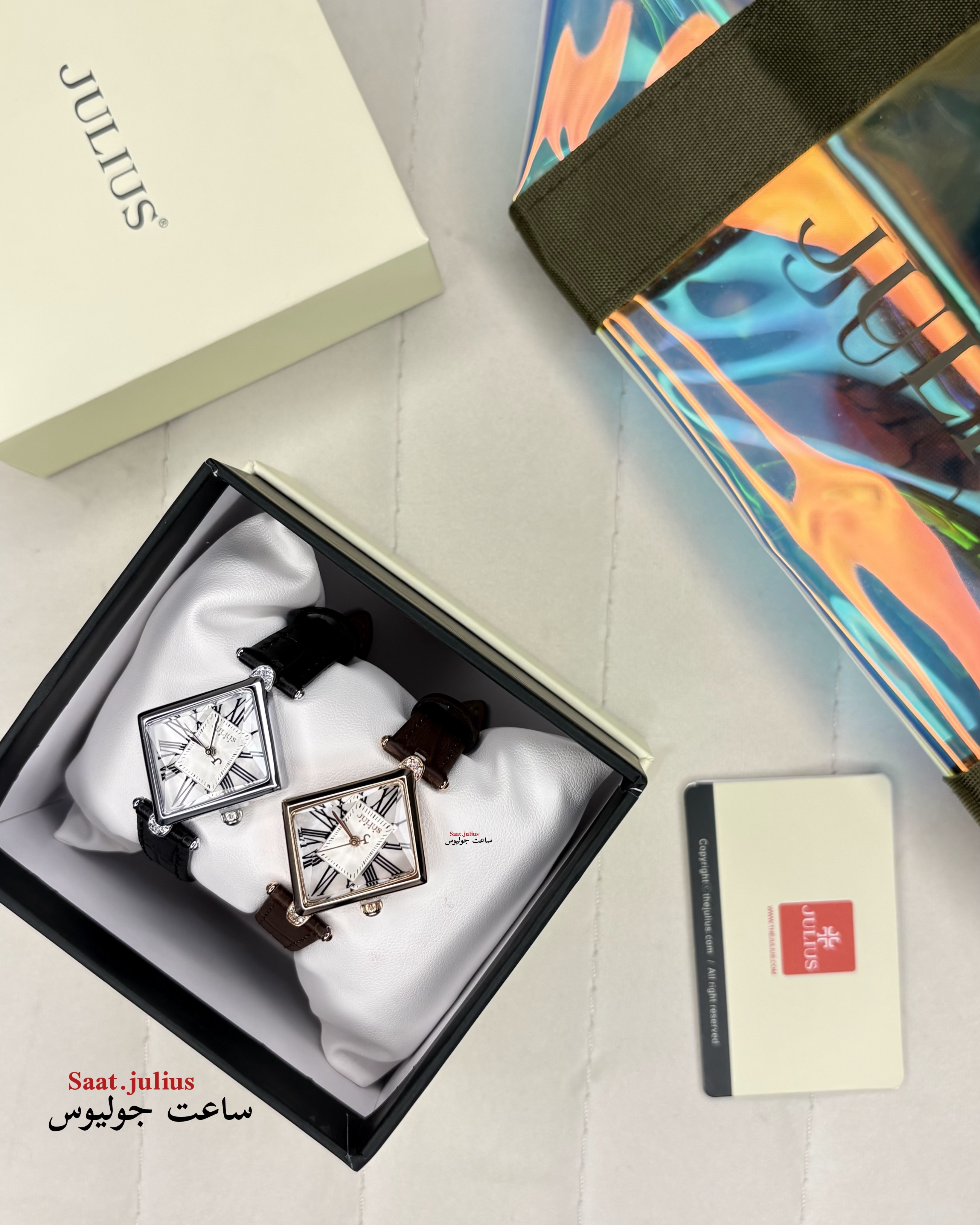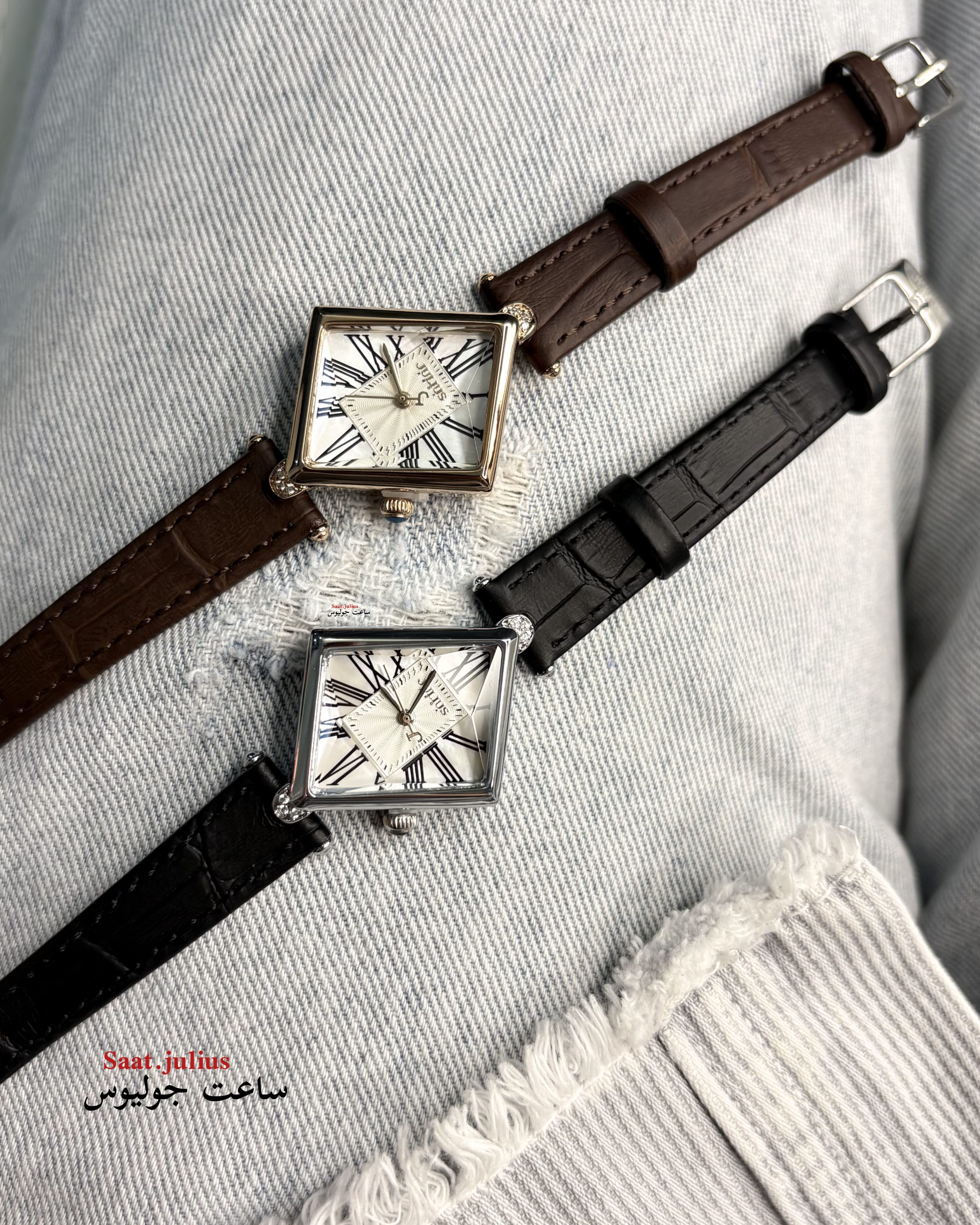 ساعت جولیوس زنانه چهار گوش بند چرم مدل JA-1527