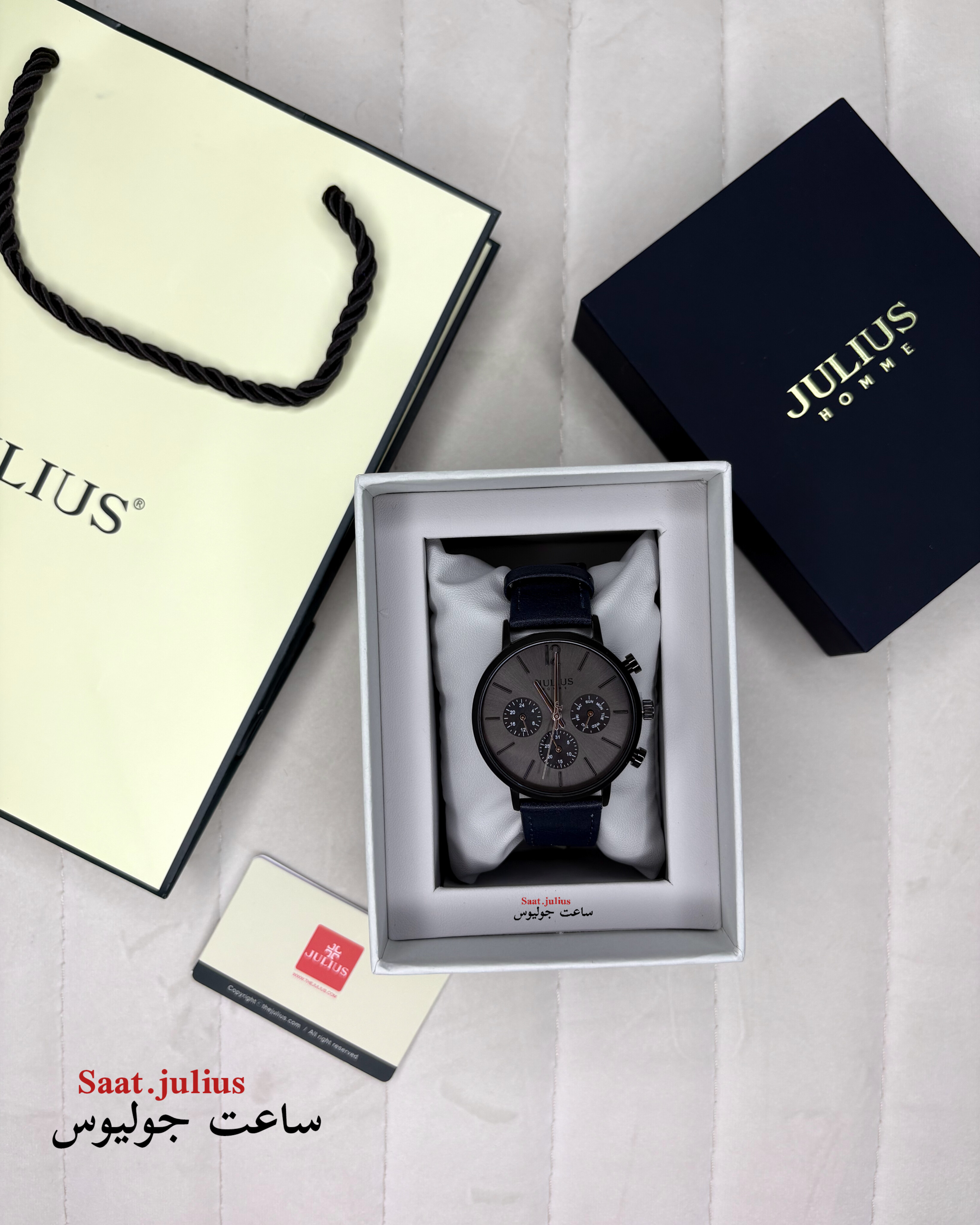 ساعت جولیوس مردانه سه موتور بند چرم مدل JAH-101B